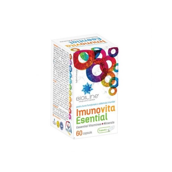 ImunoVita Esential contine un amestec complex de 11 vitamine si minerale esentiale pentru buna functionare a sistemului imunitar si cresterea rezistentei organismului.
