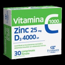 Vitamina C 1000 mg + Zn 25 mg + D3 4000 UI x 30 comprimate filmate Fiterman