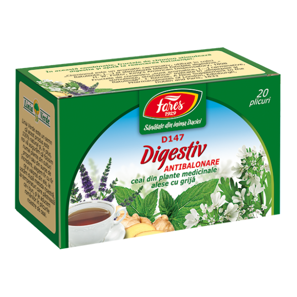 Ceaiul Digestiv D65-pungă/D147-plic se poate asocia cu capsule Digestie uşoară-D57, sau cu bitter Herba Dacica-D94.