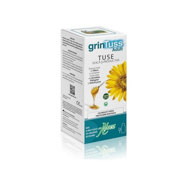 Grintuss adult sirop este formulat cu complexe moleculare vegetale precum rășinile, polizaharidele și flavonoidele. Aceste substanțe, alături de miere, îi conferă produsului o proprietate mucoadezivă, protectoare și emolientă, precum și un gust foarte plăcut.