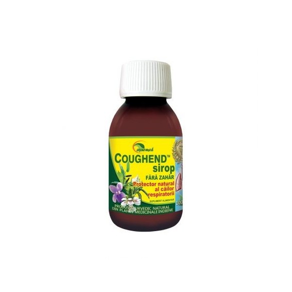 Tusea este un act reflex, caracterizat de expiratii rapide, fortate si apare ca urmare a cresterii presiunii in caile respiratorii, cand are loc deschiderea brusca a glotei si contractia muschilor respiratori, urmata de eliminarea rapida a aerului din plamani, ce are ca rezultat expulzarea corpilor straini sau a secretiilor din caile respiratorii. Suplimentul alimentar COUGHEND Sirop este un produs natural din plante medicinale indiene, care sustin sanatatea cailor respiratorii superioare si inferioare fiind adjuvant in toate tipurile de tuse (uscata, productiva, convulsiva). Fitonutrientii contribuie la decongestionarea cailor respiratorii prin mentinerea fluiditatii mucusului, eliminarea acestuia in cazul tusei productive si calmeaza actul reflex de tuse in caz de tuse seaca.