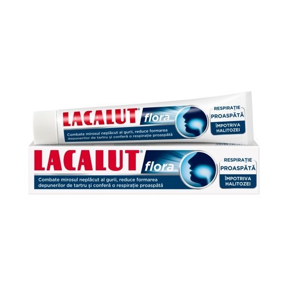 Formula speciala a pastei de dinti LACALUT Flora x 75 ml previne mirosul neplacut al gurii si asigura o respiratie proaspata, reducand formarea tartrului si aparitia cariilor.