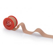 Din material textil de culoarea pielii, cu adeziv sintetic in benzi; deosebit de extensibil si rezistent, hidrofug la impregnare, cu margini in zig-zag.