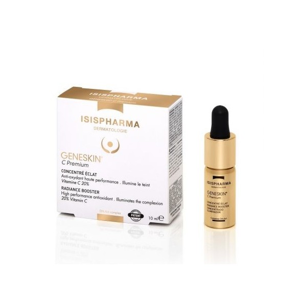 GENESKIN C Premium – Ser concentrat cu efect iluminator ofera o protectie anti-oxidanta puternica, datorita actiunii sinergice ale vitaminei C si E. Multumita concentratiei ridicate, are efect iluminator imediat asupra tenului, protejeaza pielea impotriva radicalilor liberi si previne imbatranirea pielii.