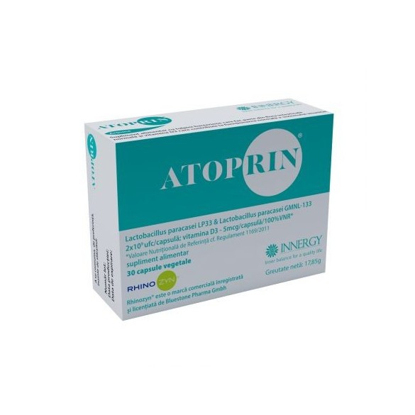 1 capsulă ATOPRIN conține (minim) 2×109 UFC Lactobacillus paracasei LP-33, Lactobacillus paracasei GMNL-133 și 5mcg (200UI) vitamina D3.
