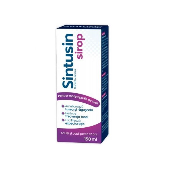 In plus, Sintusin sirop imbunatateste hidratarea gatului si faciliteaza expectorarea mucusului.