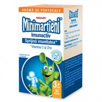 Minimarțieni Imunactiv este un complex de vitamine și minerale special conceput pentru copii. Tabletele masticabile cu aromă de capsuni cu forma unor mini-marțieni. Fiecare tabletă conține doza zilnică recomandată de vitamine și minerale, necesară dezvoltării fiziologice normale a copiilor.