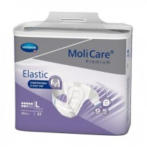 Disponibil in 3 variante de absorbtie, de la marimea S la XL, gama MoliCare Premium Elastic este recomandata incepand de la incontinenta moderata la cea severa si reprezinta solutia sigura pe timp de noapte.