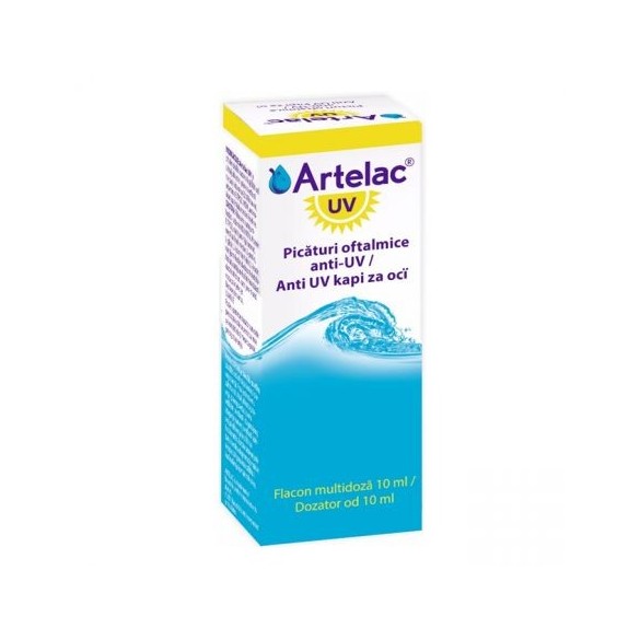 Artelac UV asigura hidratarea și protecția suprafeței oculare.