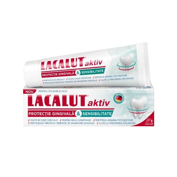 Pasta de dinti Lacalut Aktiv Sensitivity întărește gingiile prevenind inflamarea și sângerarea acestora.