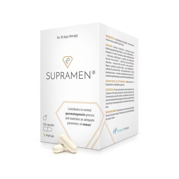 Produs recomandat bărbaților ca supliment alimentar ce poate ajuta la îmbunătățirea sănătății reproductive și la creșterea ratelor de succes ale programelor de fertilizare. Supramen conține o combinație optimă de ingrediente ce susțin procesul de spermatogeneză și ajută la îmbunătățirea celor 3 parametri esențiali de evaluare ai materialului seminal: