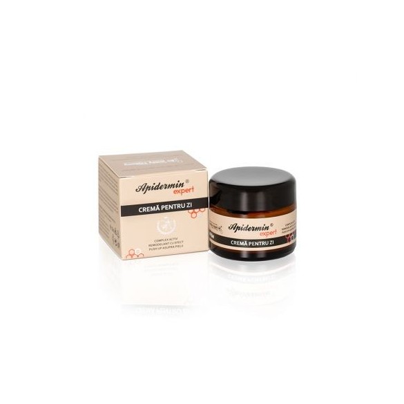 Apidermin Expert cremă pentru zi este un mix de ingrediente active premium cu eficiență demonstrată, pornind de la multiplele ingrediente de origine naturală ca extractul de ulei de măsline, acizi grași naturali omega 3, 6, 9 din uleiul de cânepă, uleiul de argan, Coenzima Q10 dar și acidul hialuronic și principiile active de ultimă generație ca filtrul molecular LIPOMOIST 2036, Tightenyl și Neodermyl și ingredientul miraculos al stupului: lăptișorul de matcă.